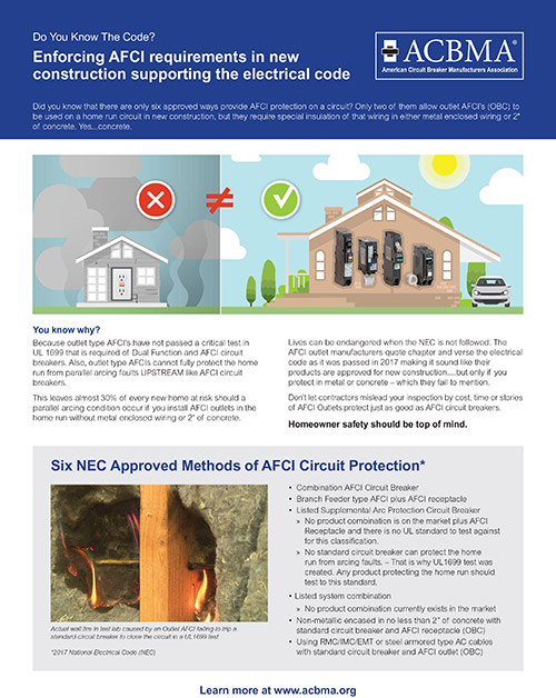 Download our four page handout that explains the importance of clearly understanding the NEC as it pertains to home run circuits. It includes a quick “checklist” for your inspections. Your review of AFCI installation is critical to homeowner safety.